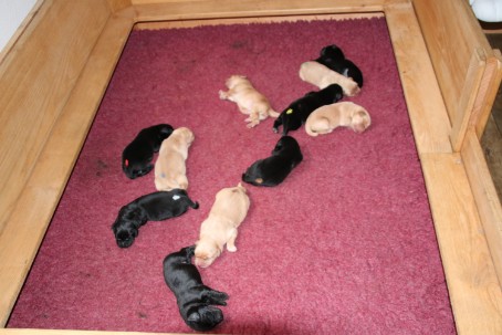 Es ist ein schwarz-gelber Wurf mit 7 Hündinnen und 4 Rüden.